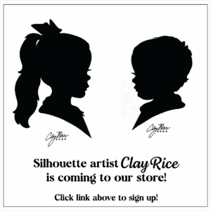 Mark your calendar! Renowned Silhouette Artist Clay Rice is coming to Smart Toys and Books. Don’t miss this unique opportunity. He only comes twice a year! Click the link to sign up. Spots will fill up quickly!